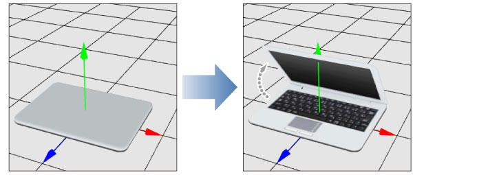 ·[ノード]を移動しにくい場合は、[パーツ移動]サブツールを選択すると、[ドキュメント]ウィンドウ上のマニピュレータを操作して編集できます。詳しくは、『パーツ移動』を参照してください。 ·[ドキュメント]ウィンドウのカメラアングルを変更して確認したい場合は、『カメラアングルの操作』を参照してください。 ·[回転中心]の値を変更した場合、[回転]の値を設定すると、[回転中心]で設定した位置を基準にして[ノード]が回転します。また、[パーツ原点移動]サブツールを選択すると、回転中心の位置を移動できます。詳しくは、『パーツ原点移動』を参照してください。 ·[ノード原点を回転中心にする]をオンにして、[回転]の値を設定すると、[ノード]の原点を基準にして[ノード]が回転します。[ノード]の原点は、[パーツ原点移動]サブツールを選択すると、[ドキュメント]ウィンドウ上のマニピュレータを操作して編集できます。詳しくは、『パーツ原点移動』を参照してください。 |