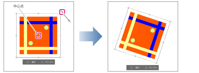 画像の変形方法について詳しくは、『ハンドルやパレットを使用した変形方法』を参照してください。 |