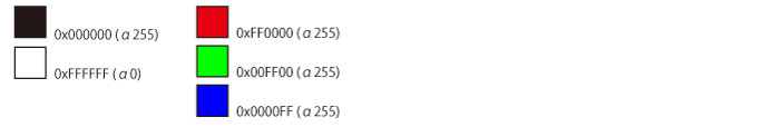 ·白(0xFFFFFF)で描画した場合は、透明色に変換されます。 ·他の色で描画した場合は上記の色に減色処理を行いますが、線画を正しく描画できない場合があります |