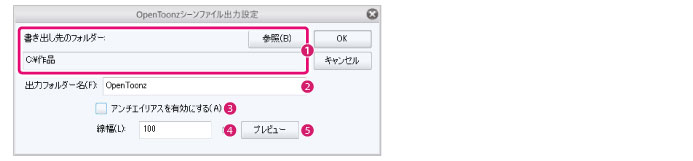OpenToonzで読み込むための線幅を調整できます。[アンチエイリアスを有効にする]がオンになっている場合、[線幅]を設定できません。