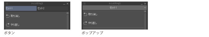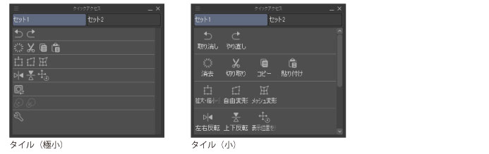 クイックアクセスセット名を選択すると、[クイックアクセス]パレットに選択したクイックアクセスセットが表示されます。