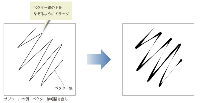 サブツールの例:ベクター線幅描き直し