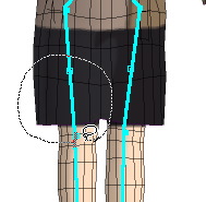 そこで、「骨組み/肉付けも変形」メニューを選択してから、「投げ輪選択」ツールで足のももの部分を選択します。
