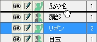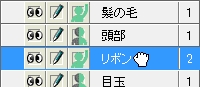 グループ名の部分、または右端の空白部分をドラッグして、レイヤーの上下の位置を変えることができます。