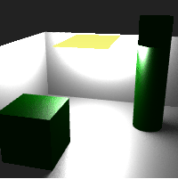 「光源種類:長方形面光源」にすると、選択した立体は長方形面光源の光源立体になります。長方形面光源は面の片側全体から光が出ます。光が出る位置に広がりがあるので、影がソフトになります。