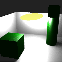 「光源種類:楕円面光源」にすると、選択した立体は楕円面光源の光源立体になります。楕円面光源は面の片側全体から光が出ます。光が出る位置に広がりがあるので、影がソフトになります。