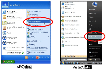 3.Windowsのスタートメニューから「マイコンピュータ」(Vistaではコンピュータ)を選択してください。
