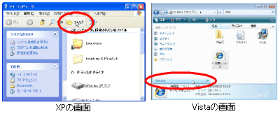 4.ウィンドウ上部の「フォルダ」ボタンを押してください(Vistaでは左下)。