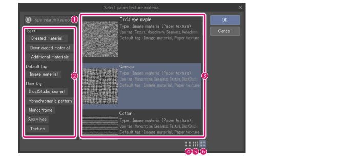 Clicking the button displays the [Select paper texture material] dialog box where you can change the texture image.