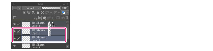 When using a Tablet/Smartphone, move a finger or pen over the grip on the right side of the layer and drag and drop it.