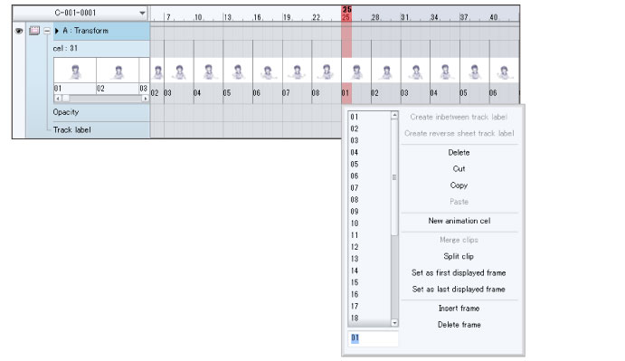 You can also insert and delete frames from the [Insert frame] and [Delete frame] options shown in the menu when you right-click a frame .