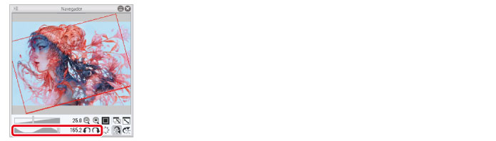 Mueva el deslizador o haga clic en los botones ubicados en la parte abajo izquierda de la ventana del lienzo o en la paleta [Navegador].